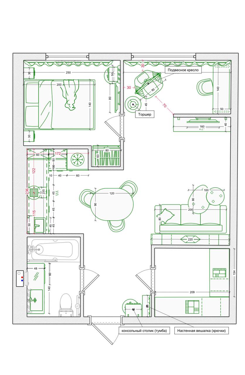 Даже ошибка — неверно рассчитанный размер стола — в итоге сыграла на пользу интерьеру: уменьшенная модель позволила корректно повесить шторы и сохранить пропорции стены.