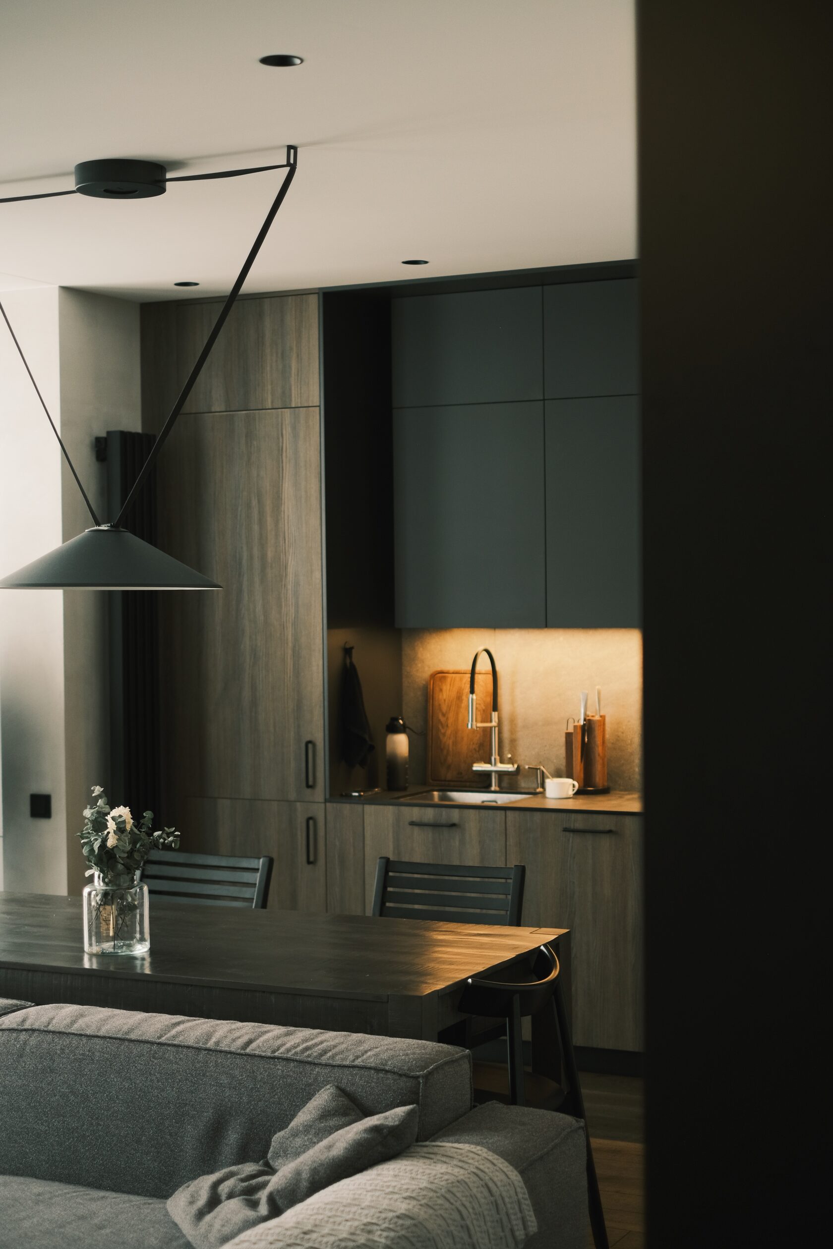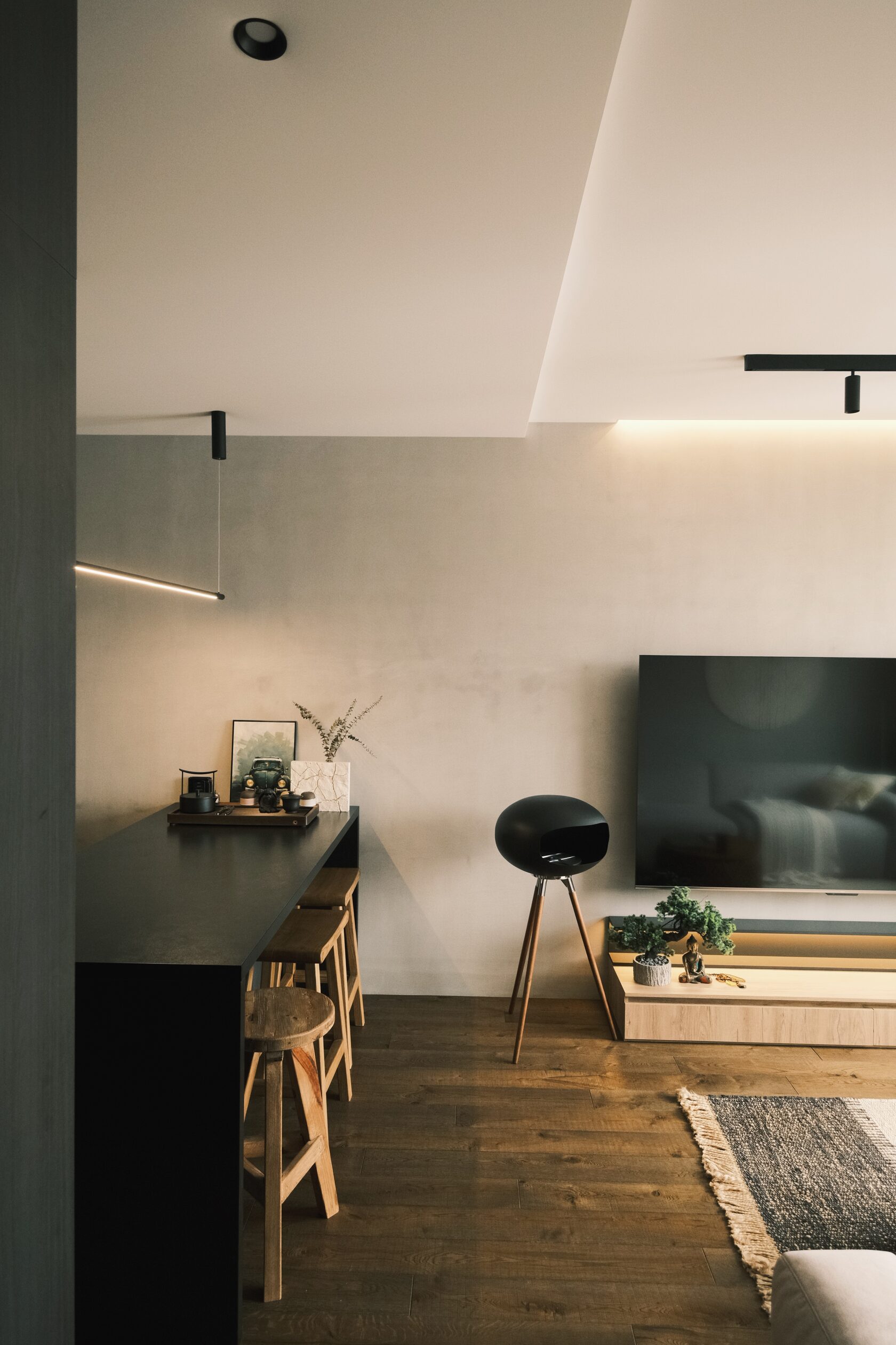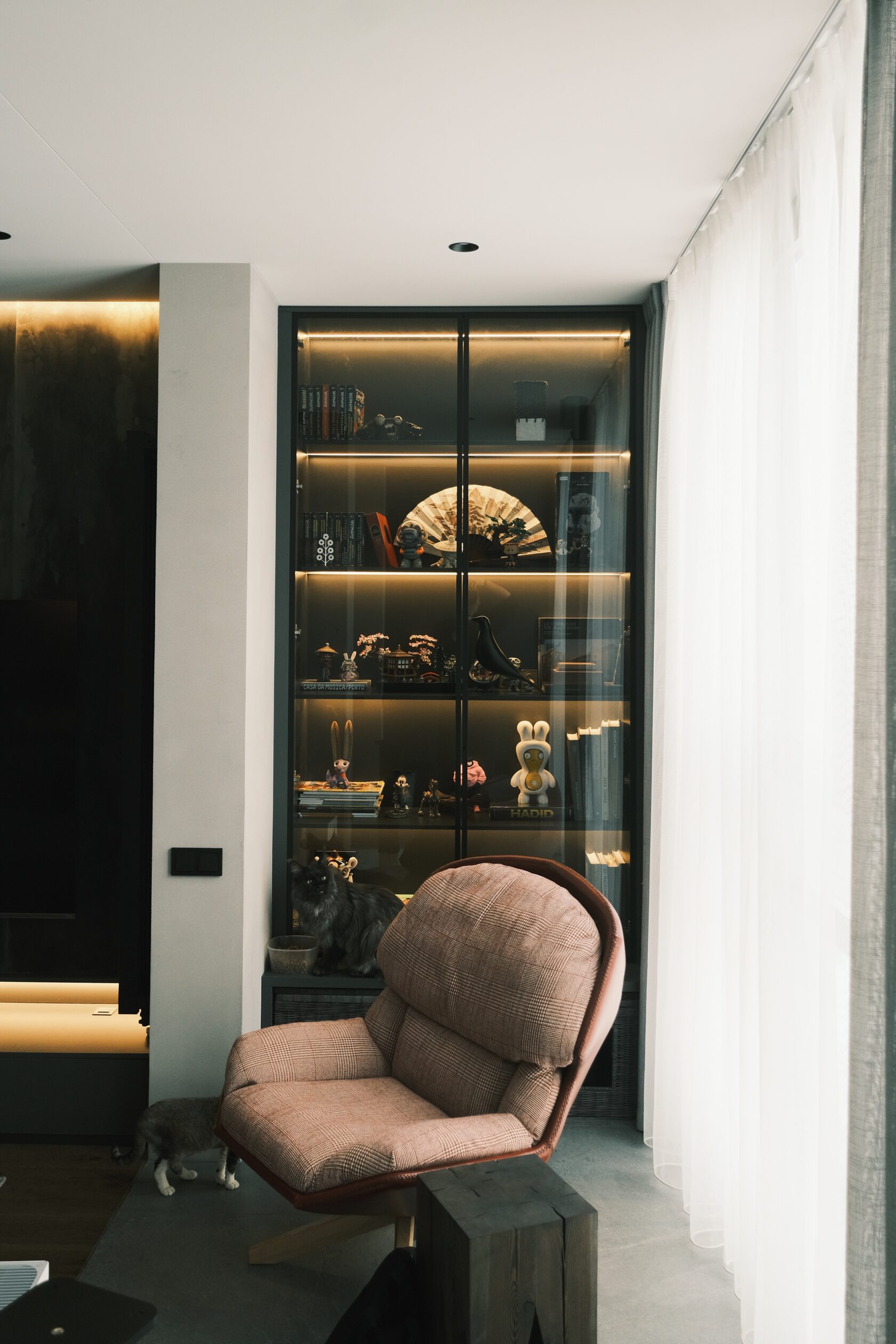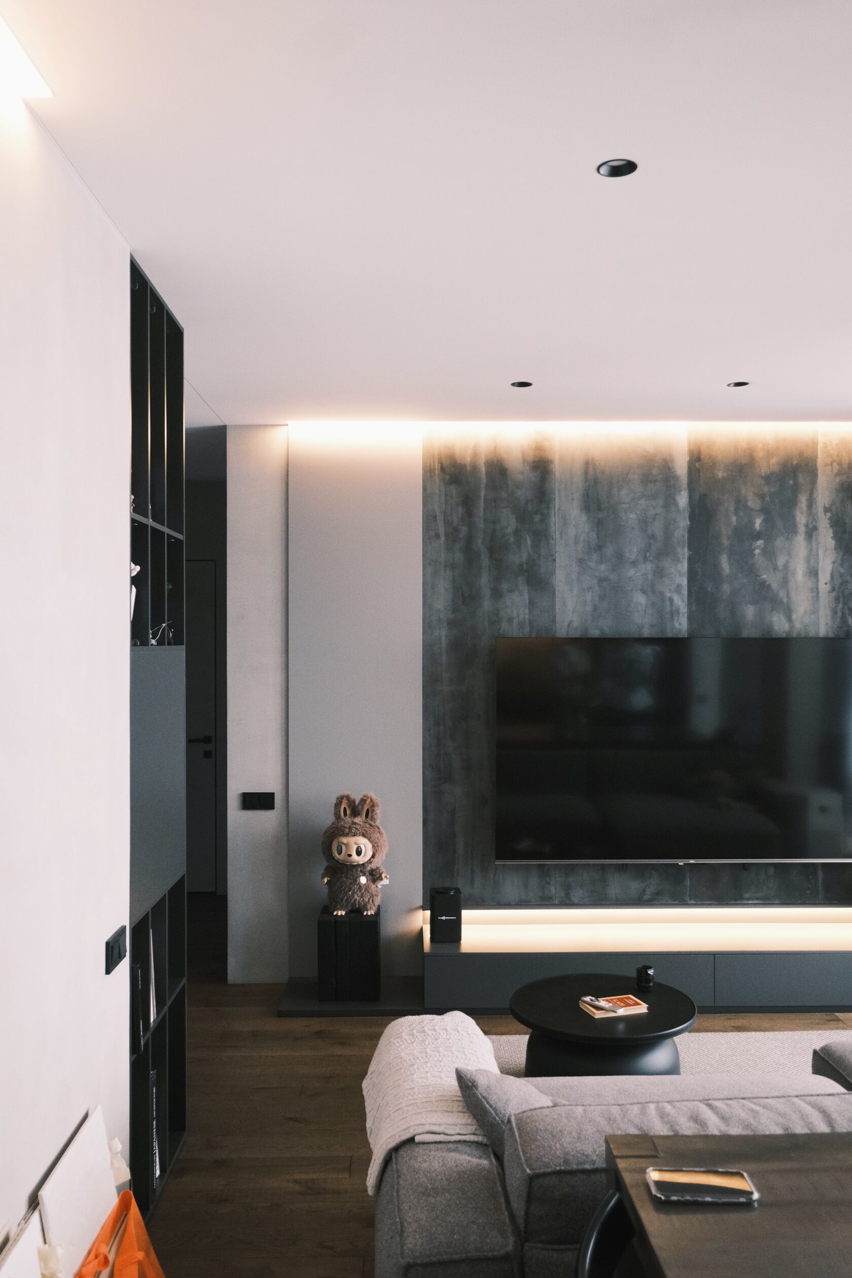 В обеих квартирах сильно проработаны световые сценарии. Паша признаётся: основной свет включают редко — в основном живут на подсветке и локальных источниках.