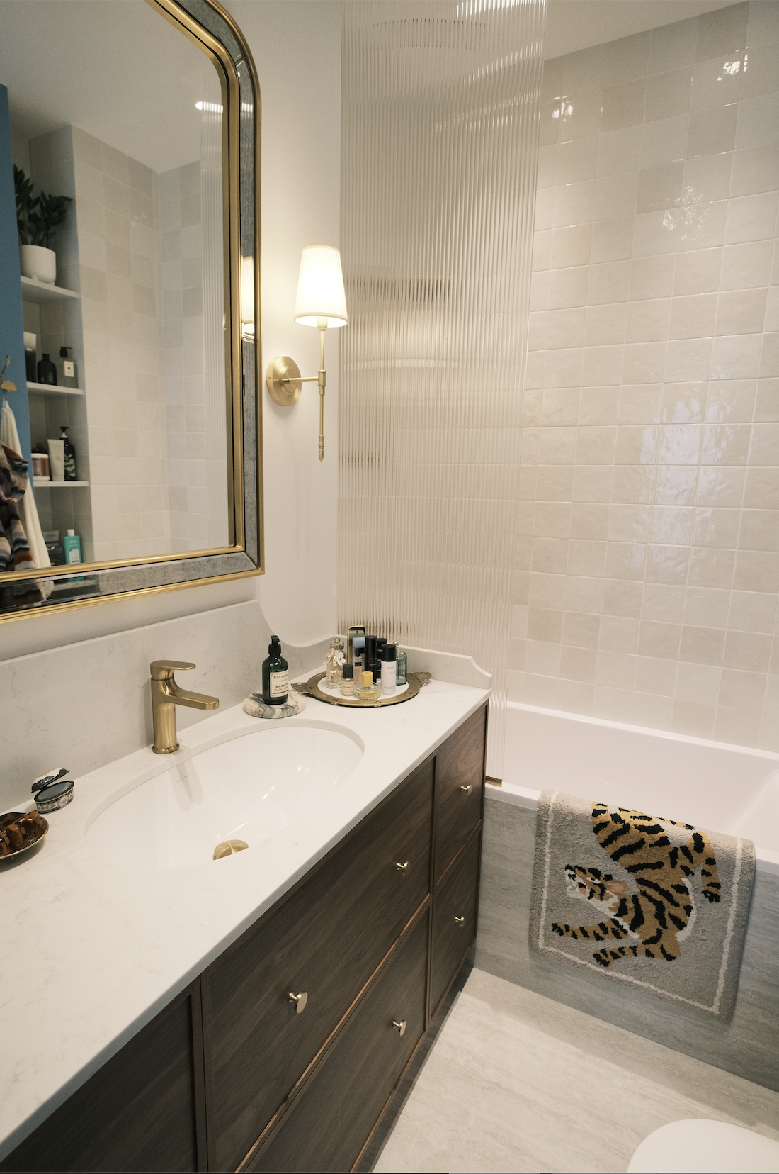 «Не нужно выбирать оттенки так, чтобы все были одинаковыми: это невозможно, так как мы сочетаем материалы с разной фактурой. Где-то оттенок чуть более серый, где-то с жёлтым тоном. Это даёт объём пространству, делает его живым».